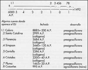 de Cueva Calero, datados por C-14 hasta en 8885+-200 A.P., con la