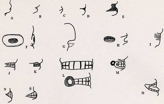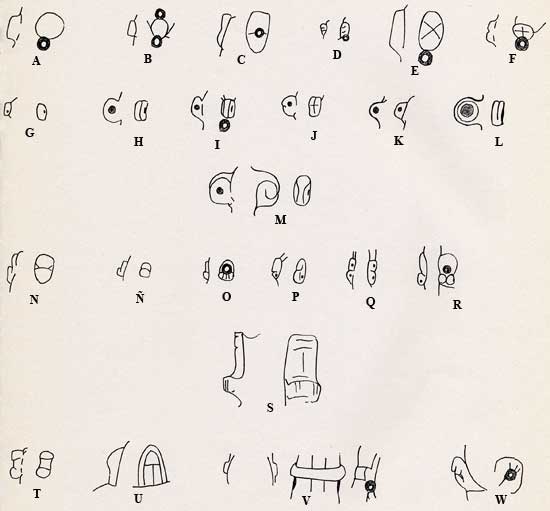 una falange y dedos (H a Ñ) que, por excepción, aparecen