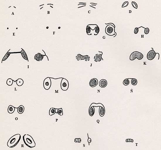 y de Ñ, O, P, R y S (frontal, posterior y lateral). B a manera