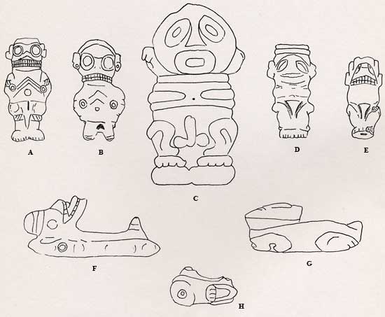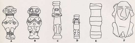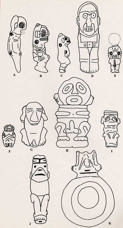 esquemática (O). Muchos de estos ídolos pueden pararse