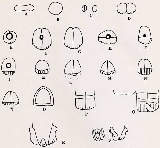 diferenciados por un estrechamiento de la base (A), en ídolos